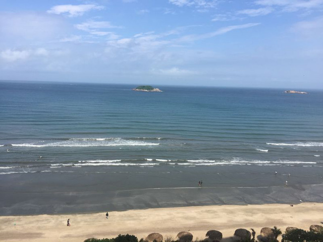 去的時候大雨滂沱,但我們也風雨無阻的前行,午飯后,雨停了,看來惠州很歡迎我們的到來,來到海邊,一望無際的大海,海水滿盈盈的,照在夕陽之下,浪濤像頑皮的小孩子似的跳躍不定,水面上一片金光,聽著海浪的聲音,盡情的擁抱大自然,心曠神怡。