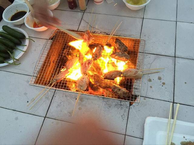 下午,虹海灣BBQ開始,大家密切配合,洗菜、燒火、把食物一個個竄好,炭火燃起,各路廚藝好手便開始大展拳腳,有條不紊地將每一串食材都烤至完美,嘗過的無不拍手稱贊,各種聲音匯合成一支美妙動聽的“野炊交響曲”,好一派熱鬧景象。