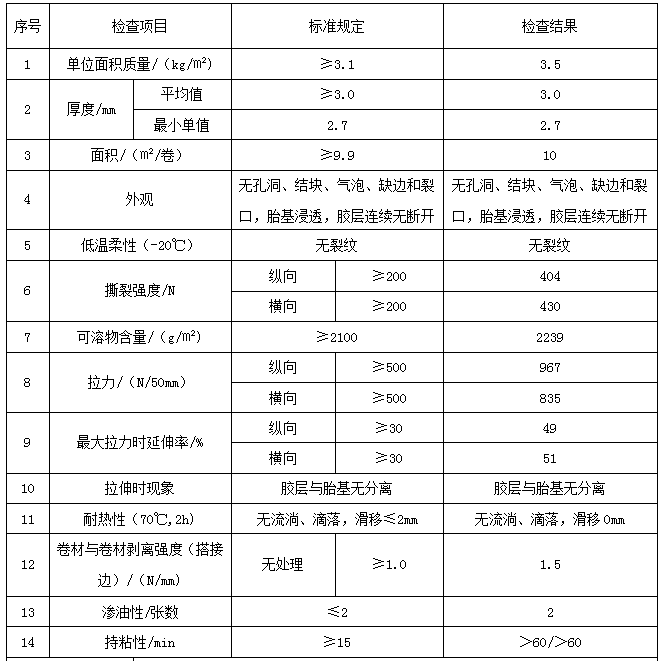 自粘瀝青防水卷材物理力學性